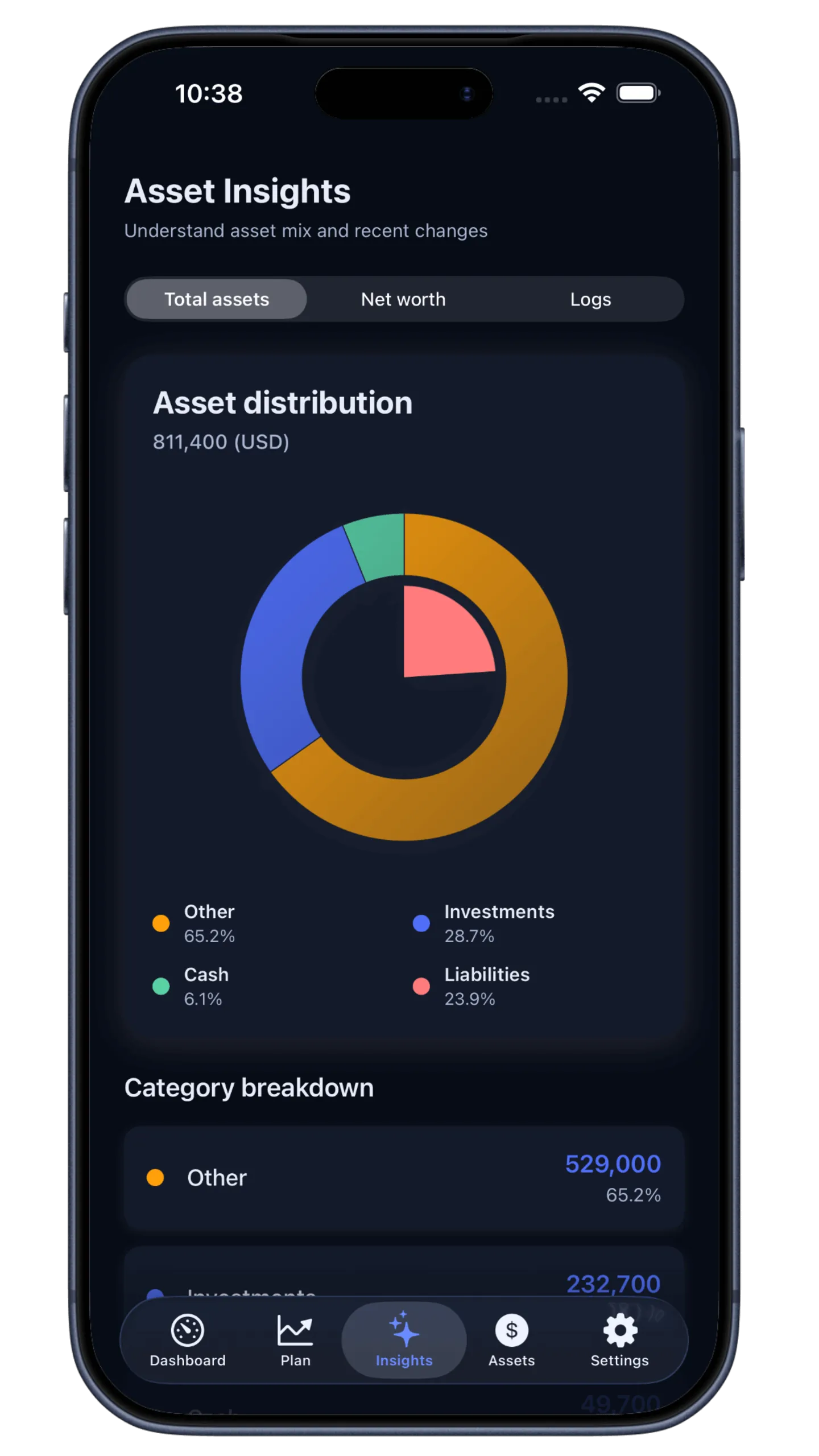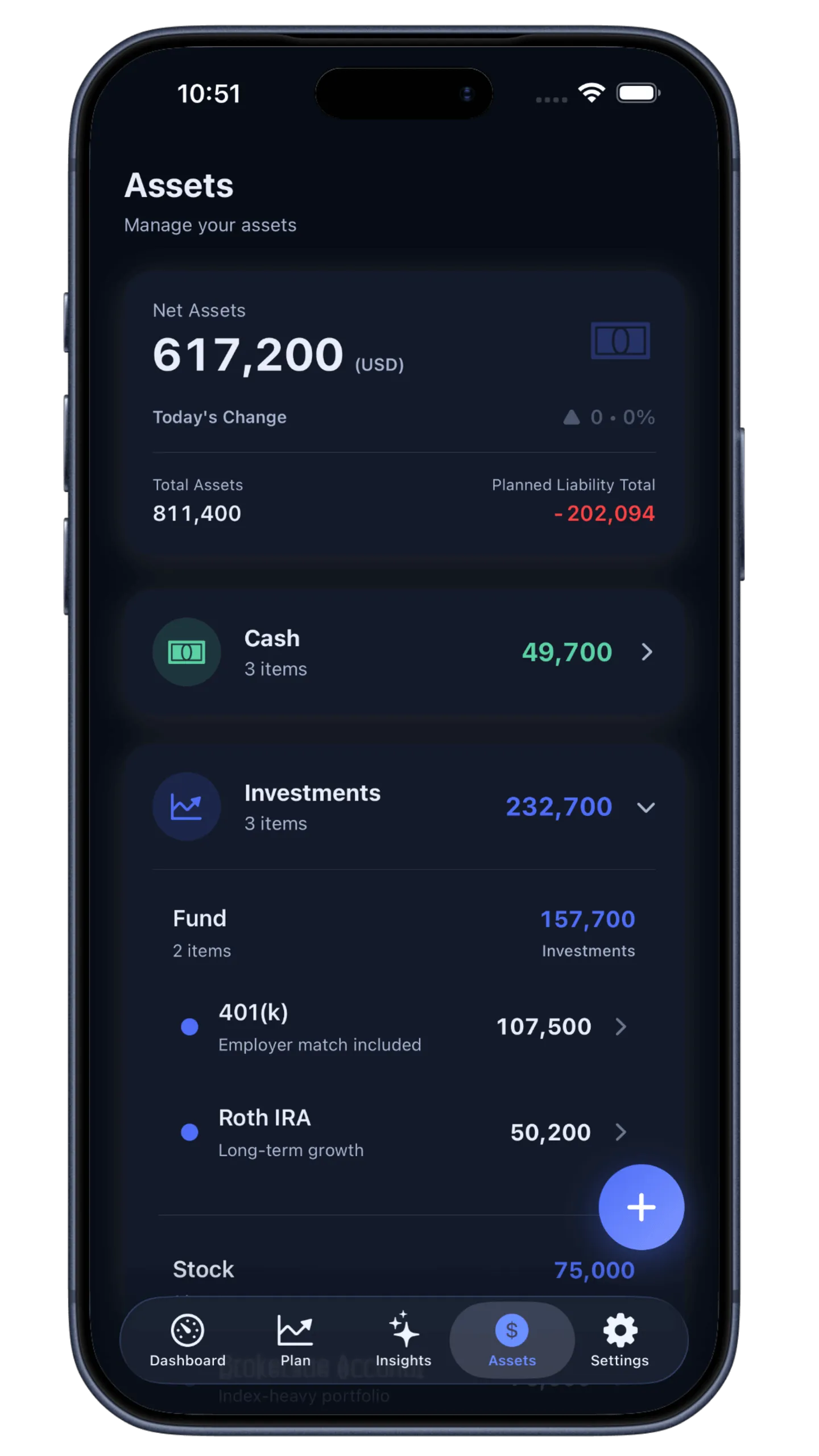 Enter your current assets manually (Stocks, Cash, Real Estate). Securely on device.